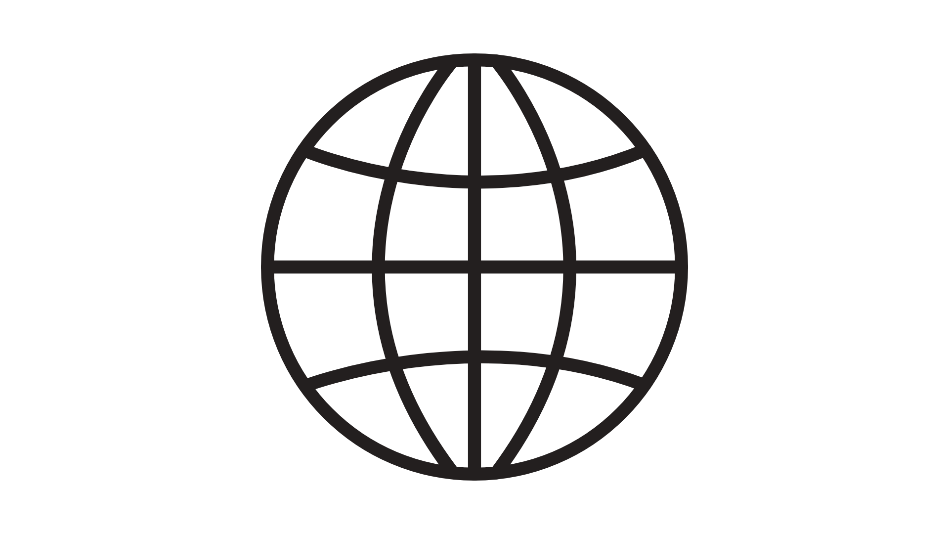 Une icône représentant un globe terrestre avec des méridiens et des parallèles en ligne noire sur fond transparent.